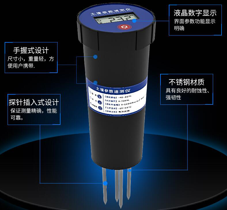 而監測土壤溫濕度、土壤酸堿度、土壤電導率等的土壤監測設備,要么是體積龐大,要么是價格昂貴,都不適合常規使用。土壤參數速測儀的出現,無疑是解決了這一困擾。