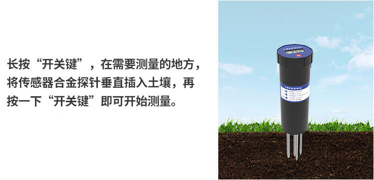 4、使用時注意測試點不要碰到石頭,不要用力過猛,否則會容易傷害電極。不宜長時間插 在土壤中,容易氧化。