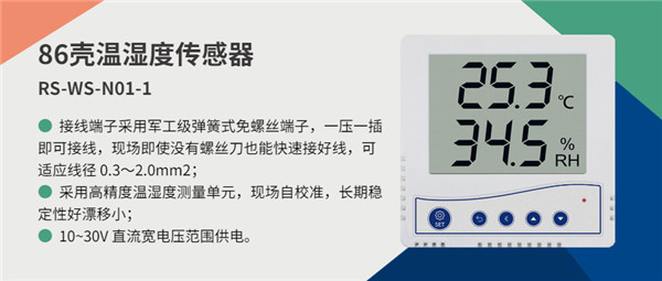 針對整個機房溫濕度監測,建大仁科推薦安裝86殼溫濕度傳感器,來監測各機房環境實時溫度和濕度,當數據超限時,進行報警并聯動空調控制器對溫度進行調節。