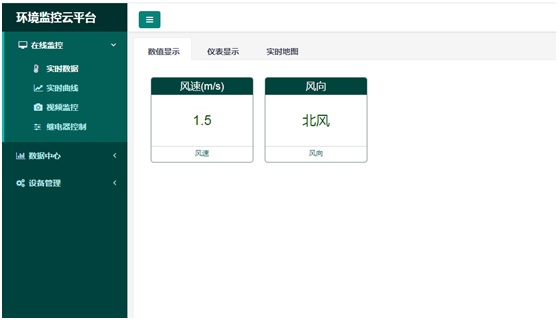 我司超聲波風速風向變送器分模擬量型、485型及網絡型款式,網絡型可內置手機卡,通過GPRS/4G網絡上傳數據至我司云平臺,20S上傳一次數據,實現web端和手機端實時監控現場風速風向狀態。