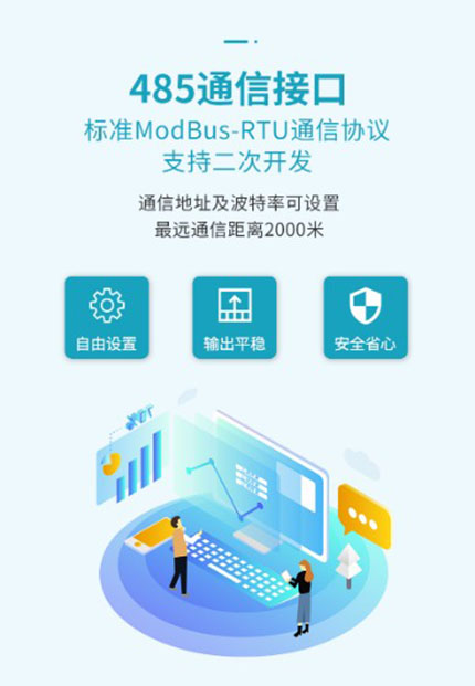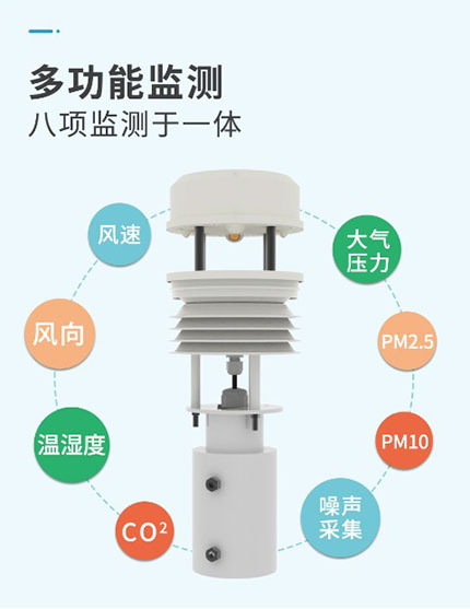 該一體式氣象站可廣泛適用于環(huán)境檢測(cè),集風(fēng)速、風(fēng)向、溫濕度、噪聲采集、PM2.5 和 PM10、CO2、大氣壓力于一體,設(shè)備采用標(biāo)準(zhǔn) MODBUS-RTU 通信協(xié)議,RS485 信號(hào)輸 出,通信距離最遠(yuǎn)可達(dá) 2000 米,可將數(shù)據(jù)通過 485 通信的方式上傳至客戶的監(jiān)控軟件或 PLC 組態(tài)屏等,也支持二次開發(fā)。 該產(chǎn)品廣泛適用于需要測(cè)量環(huán)境溫濕度、噪聲、空氣質(zhì)量、CO2、大氣壓力等各種場(chǎng)合, 安全可靠,外觀美觀,安裝方便,經(jīng)久耐用。